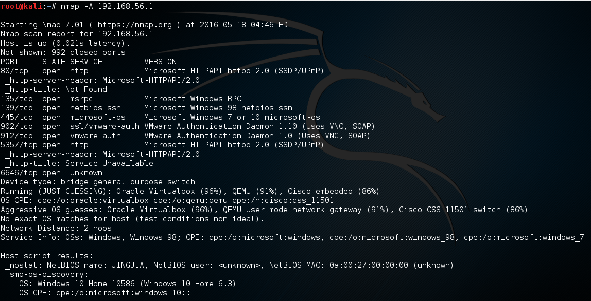 受測機器更詳細的訊息:包括作業系統猜測,設備類型,和MAC地址等。