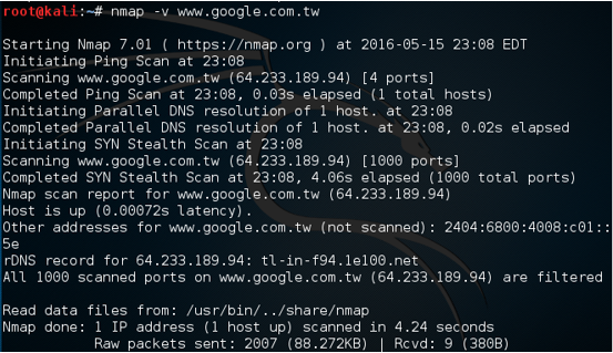 -vv:(Very Verbose)列出更多詳細的掃描資訊